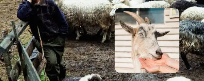 Pomozte mladíkovi najít kozu mezi ovcemi. Najděte kozu na fotografii / Koláž Moje / foto depositphotos.com, Moje Testy pozornosti a zrakové ostrosti nejsou