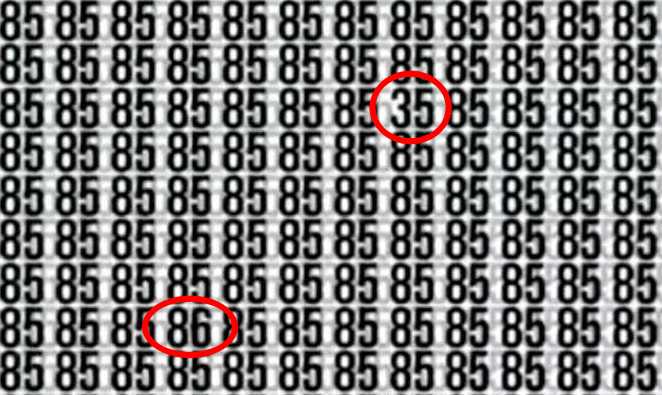 V další hádance je třeba najít dvě skrytá čísla – 86 a 35 – mezi velkým počtem čísel 85, píše jagranjosh. Nebude snadné si všimnout, kde se skrývají čísla, která se liší od všech ostatních.