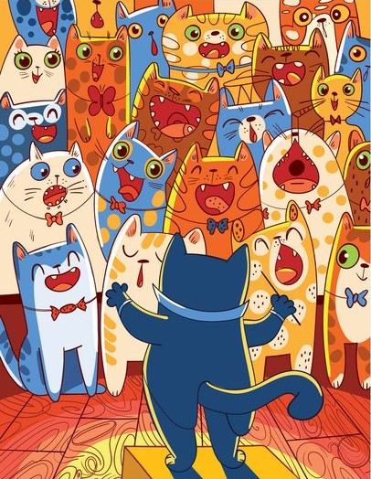Na obrázku hádanky vidíte skupinu koček, které sborově zpívají. Šedý kocour v popředí je vůdcem sboru a ostatní kočky ho následují. Kočky se připravují na sborovou soutěž a potřebují veškerou energii, kterou mohou získat. Kocour, který je dirigentem sboru, koupil pro svou skupinu ryby. Bohužel jedna z nenasytných koček všechny ryby snědla a zbyla jen jedna ryba. Dokážete do 12 sekund najít rybu ukrytou ve sboru?