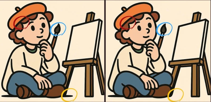 Jste připraveni vyzkoušet své pozorovací schopnosti? Podívejte se na dva obrázky umělce sedícího před plátnem. Na první pohled se může zdát, že jsou obrazy zcela totožné, ale jsou mezi nimi tři malé rozdíly.