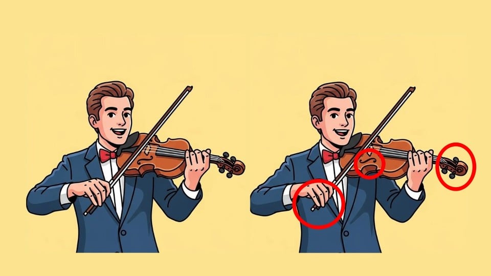 Jste připraveni přijmout novou výzvu? Podívejte se pozorně na dva obrázky s houslistou. Na první pohled vypadají stejně, ale je to jen iluze – skrývají se mezi nimi tři malé rozdíly. Podaří se vám je všechny odhalit během 37 sekund? Je čas otestovat vaši pozornost!