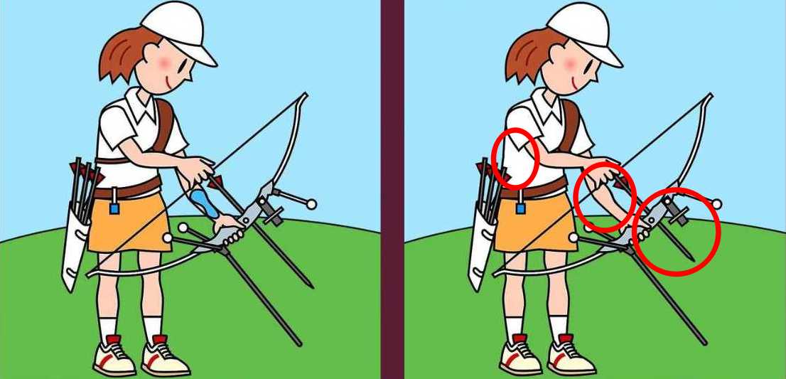 Pouze lidé s „orlím zrakem“ dokážou ve velmi krátkém čase – pouhých 16 sekund – rozpoznat tři rozdíly mezi obrázky lukostřelkyně. Ne každý to zvládne tak rychle.