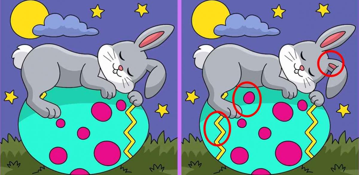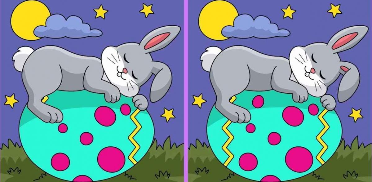 Jste připraveni otestovat se? Zde jsou dva obrázky: zobrazují králíka spícího na velikonočním vajíčku. Na první pohled by se vám mohlo zdát, že jsou zcela totožné, ale není tomu tak – jsou mezi nimi tři rozdíly.