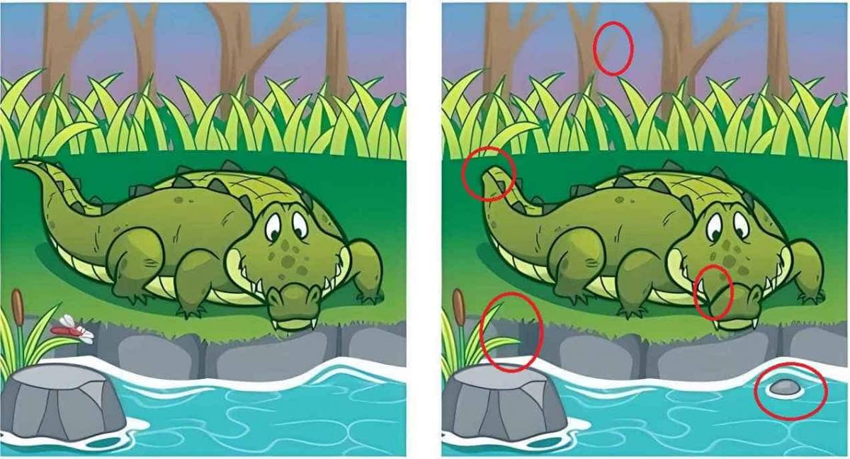 Jste připraveni se otestovat? Podívejte se pozorně na obrázky krokodýlů. Na první pohled vypadají úplně stejně, ale je to jen zdání – skrývá se mezi nimi 5 rozdílů. Dokážete je všechny najít za 13 sekund?