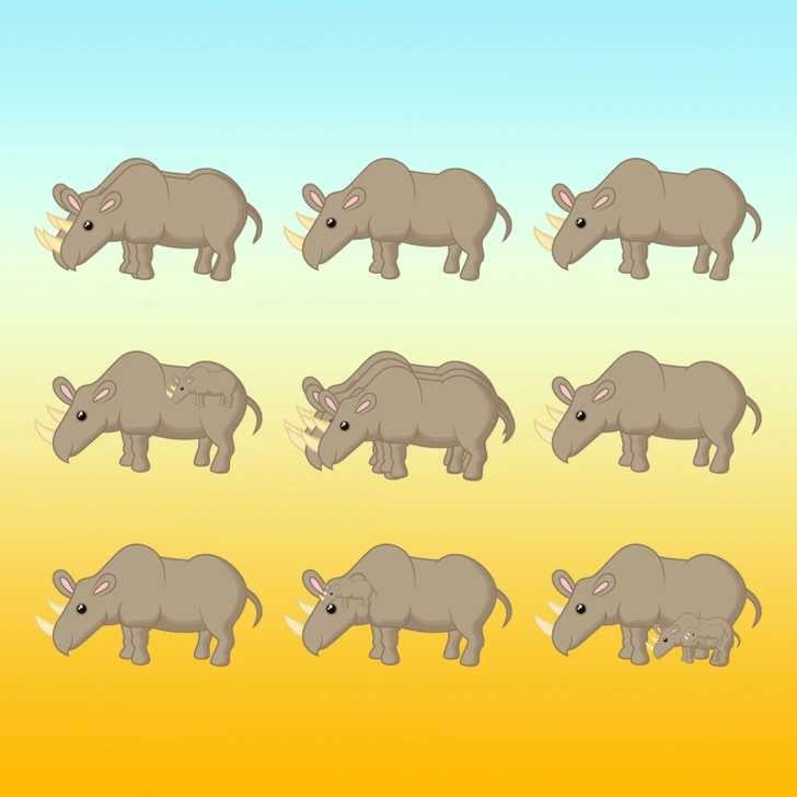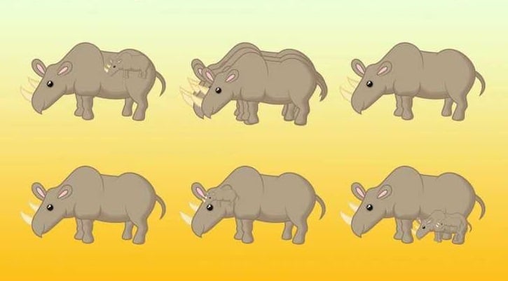 Musíte se na obrázek podívat velmi pozorně a pokusit se určit, jaký je přesný počet nosorožců.