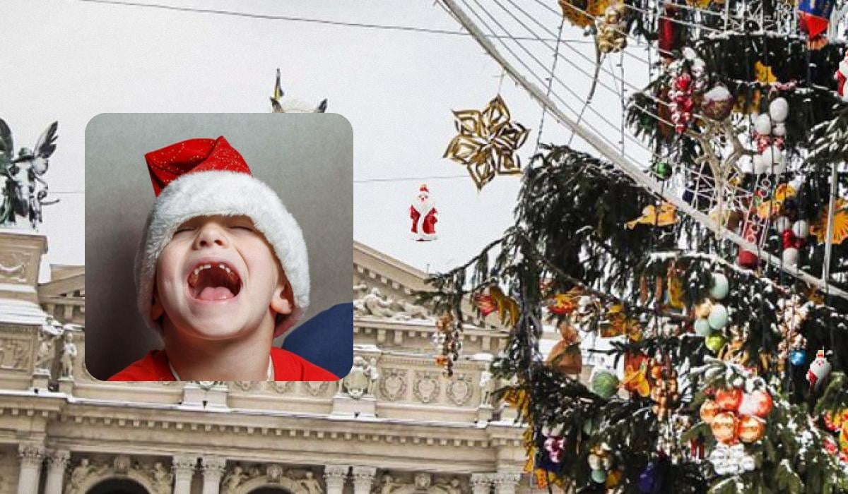Níže je fotografie majestátního vánočního stromku ozdobeného různými hračkami. Objektiv fotografa zachytil girlandy, ozdoby v podobě cukroví a hvězdiček a také 11 malých figurek Dědy Mráze.