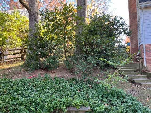Pes je vidět u paty stromu na levé straně, kde je vidět část jeho hlavy.